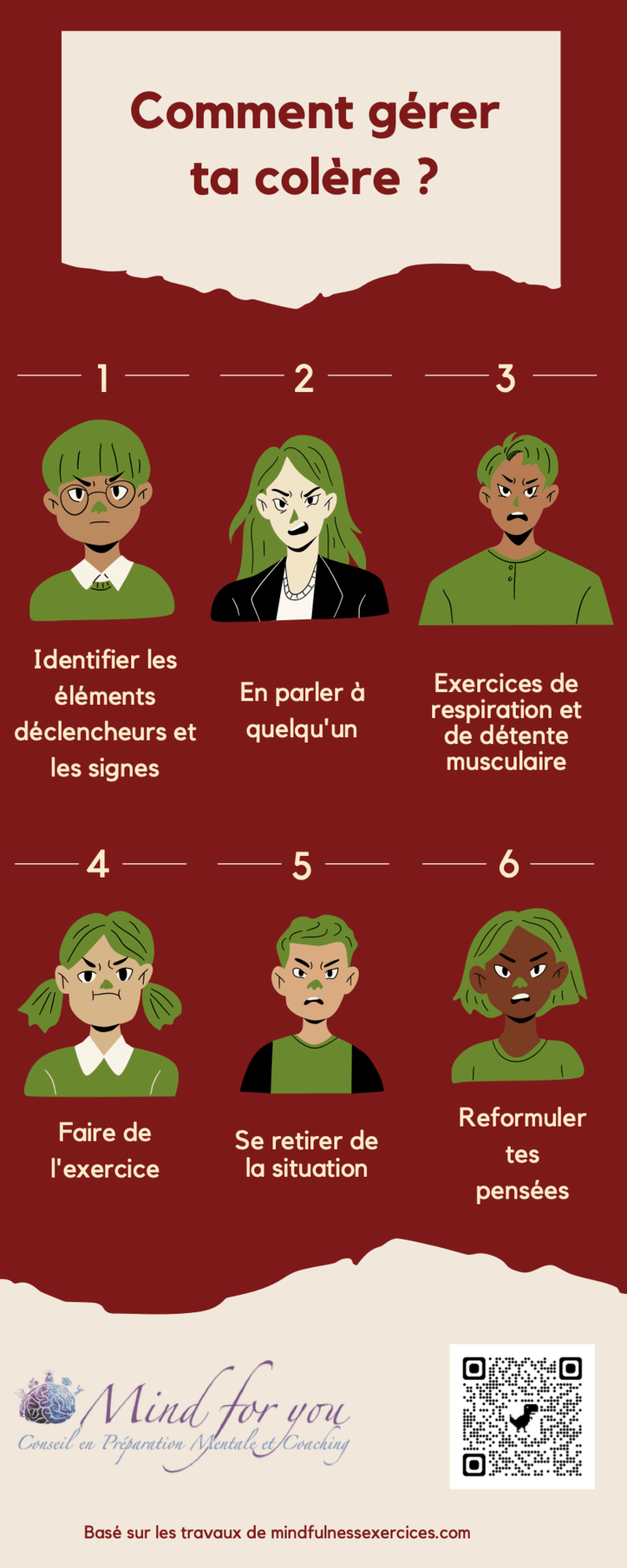La colère, une des quatre émotions de base. Nous l’associons souvent à des sensations désagréables. Apprendre à gérer sa colère peut être un plus pour chacun d’entre nous. Vous trouverez dans la fiche de cette semaine quelques idées pour mieux gérer votre colère au quotidien.